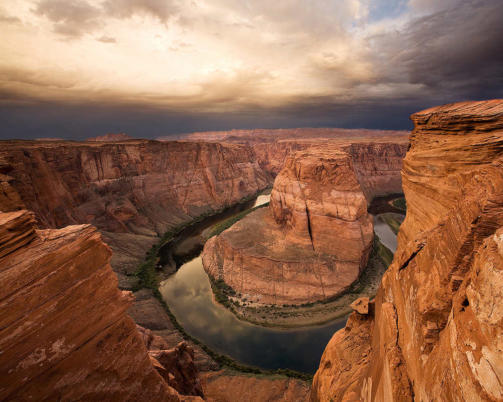 I could not help photographing Horseshoe Bend on my drive across the country. Even though I am typically drawn to lesser-known places, I’ve always wanted to photograph this one. It is quite simply one of the most awesome places on the continent. When I arrived, well before sunrise, my first goal was to acquaint myself with the landscape as quickly as possible, and discover which emotions I wanted to take away in my camera. Not surprisingly, the overwhelming sensation is one of vertigo. I spent considerable time looking for a composition which best suited this feeling (while not putting my life in danger – don’t worry, mom). I found this surprisingly-seldom-photographed vantage from which it feels like you are about to fall right into the canyon. From there, all I had to do was wait. It seemed like the cloud cover would remain, and my one chance at sunrise here would to be a dud. But as the sun rose in the sky, it became just strong enough to pierce through the sandy clouds and cast an eerily even red glow over the entire canyon as well as the Colorado River itself. It was a truly inspiring sight.
